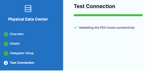 10. In Connection Test, Harness validates the Artifactory Repository authentication and permissions for the repo. Click Continue. If the test fails, that means the Delegate can't connect to https://harness.jfrog.io/artifactory/. Make sure that the EC2 instance hosting the Delegate can make outbound connections to https://harness.jfrog.io/artifactory/.