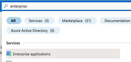 1. From the MS Azure console, enter Enterprise in the top search box and click Enterprise Applications.