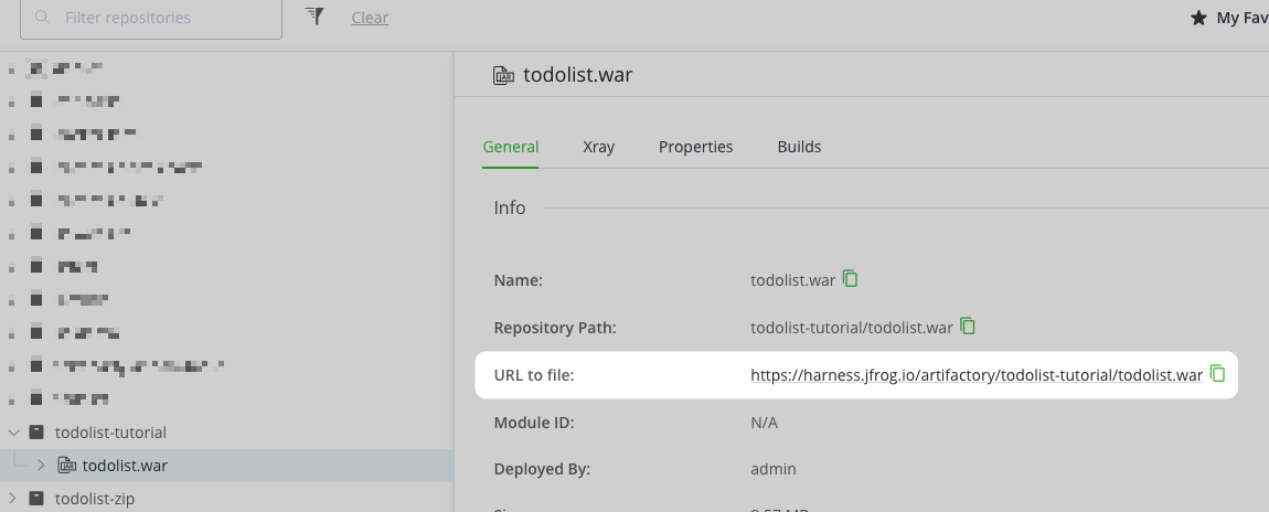 • Repository URL: Go to Artifactory Repository URL.