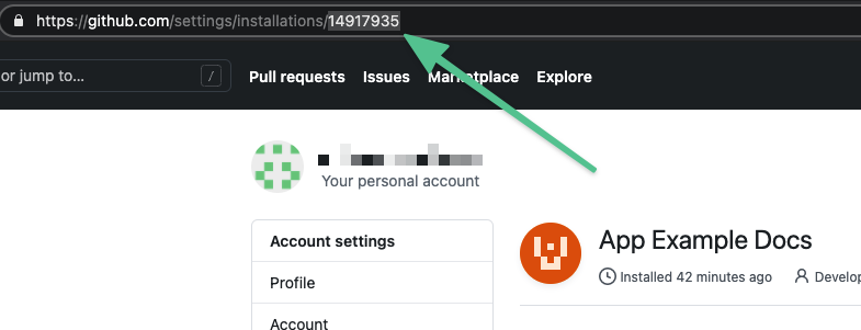 https://github.com/settings/installations/INSTALLATION_ID