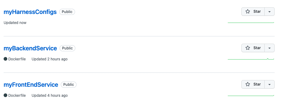 This topic describes the second workflow. We start with two code repos in Git, for a front-end service and a back-end service. Then we create pipelines, input sets, and triggers for the two codebases in a separate Harness repo.