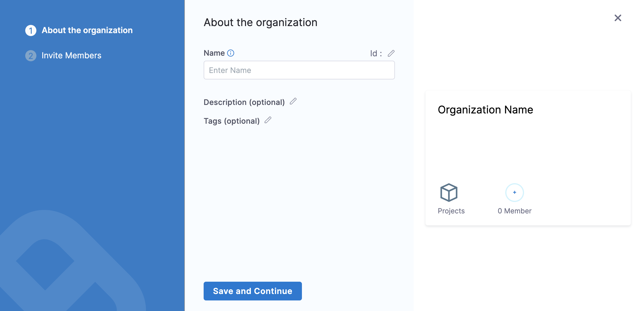 Enter Description, and Tags for your new org.